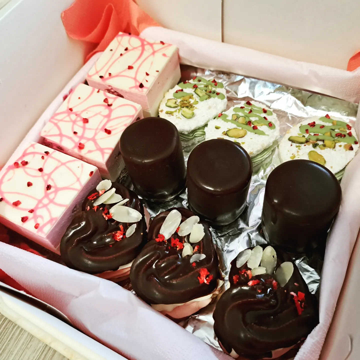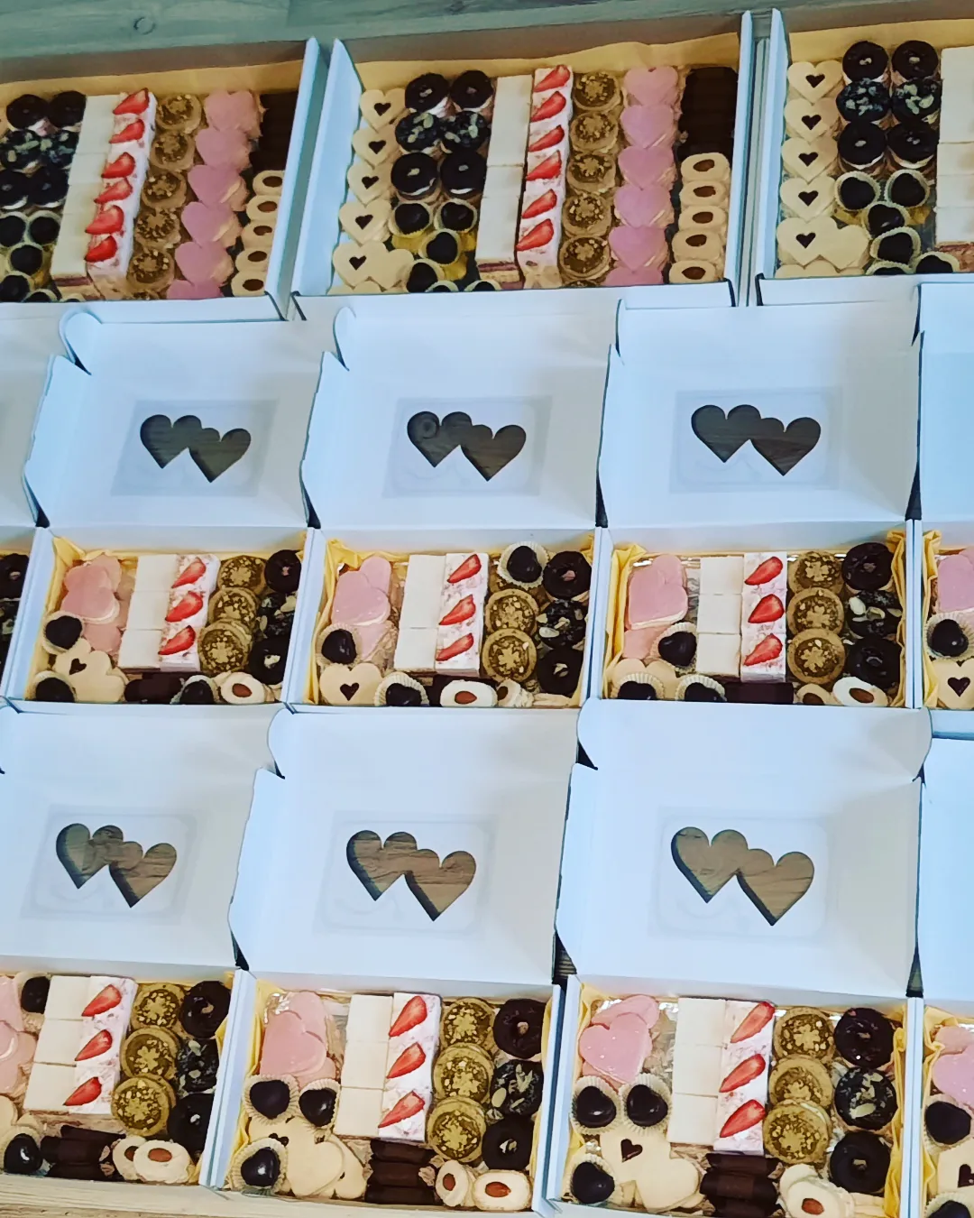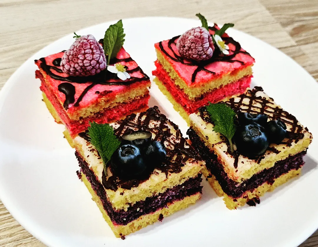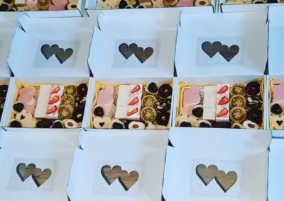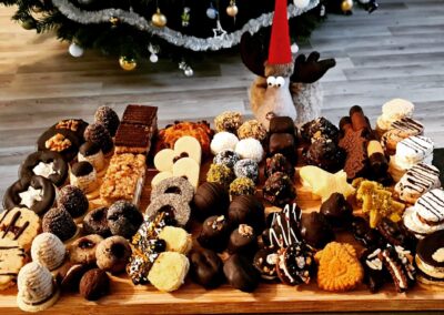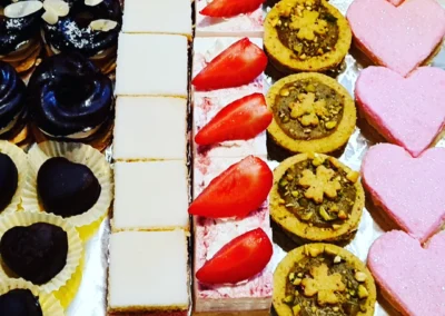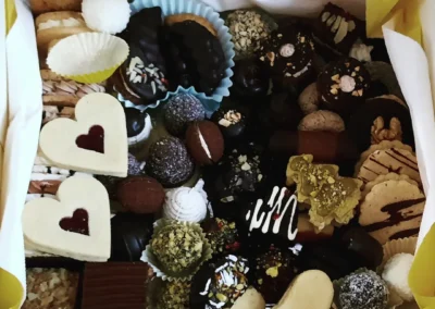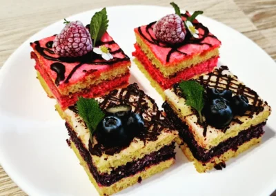 Řezy, mini dezerty a pralinky, řezy a mini dezerty s ořechy, čokoládou a ovocem.